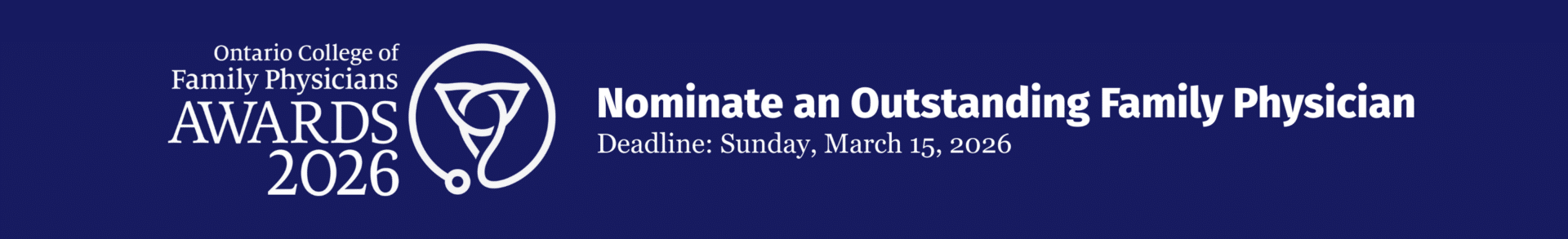 The OCFP Awards showcase the breadth of innovation and diversity of practice within family medicine. We proudly recognize family physicians, residents, and medical students who are shaping the future of health care through their dedication and commitment to patient care, community health, and social responsibility. We encourage you to nominate an outstanding individual and help us recognize their impact.